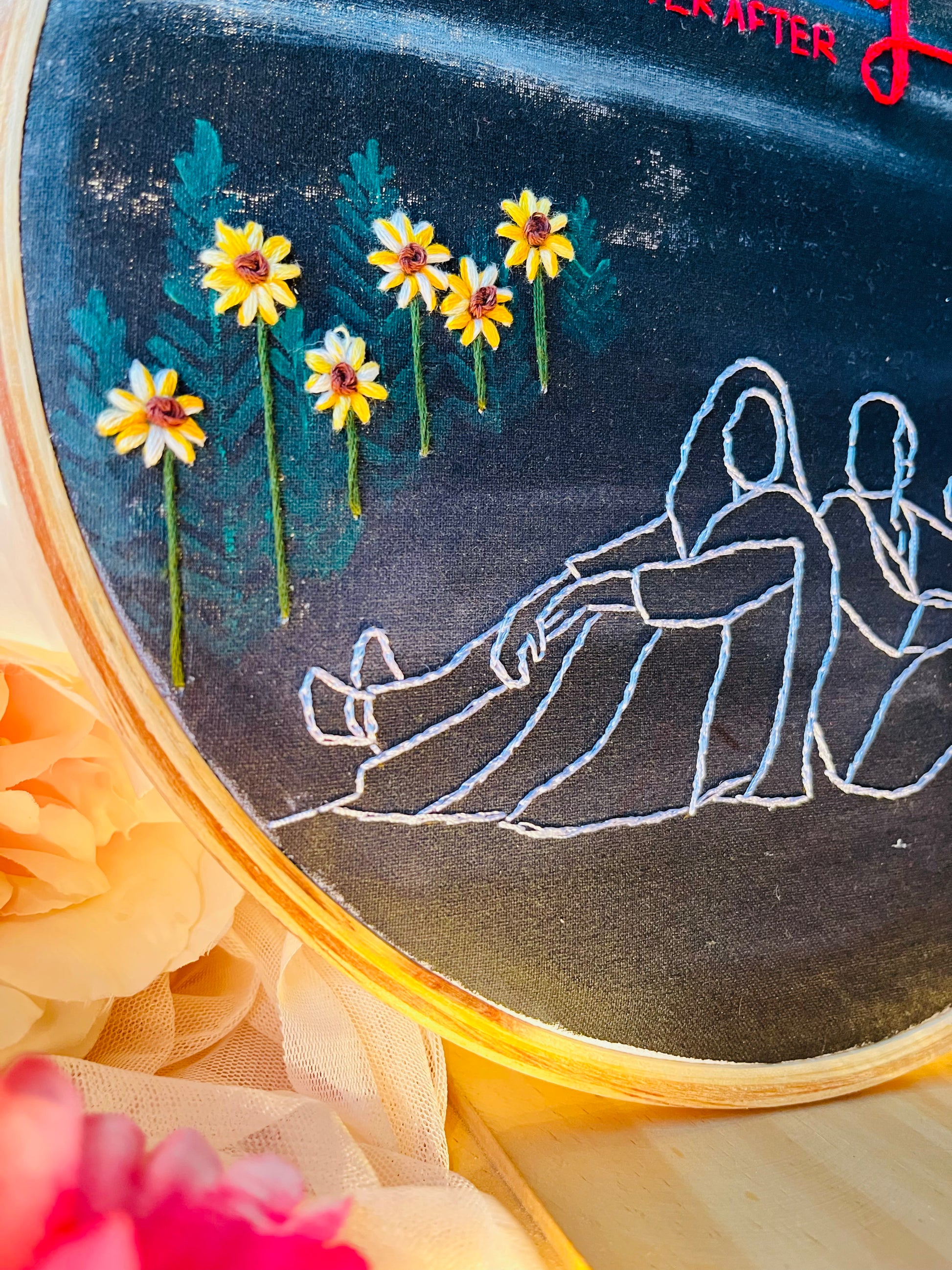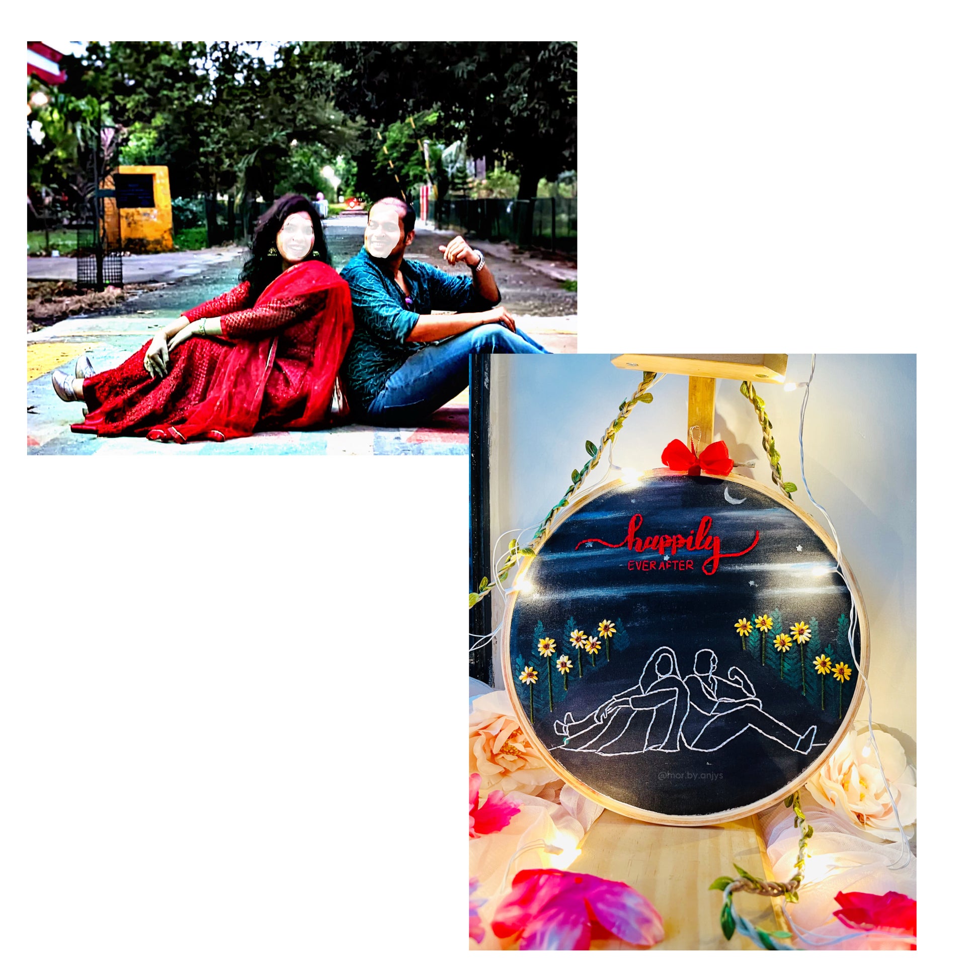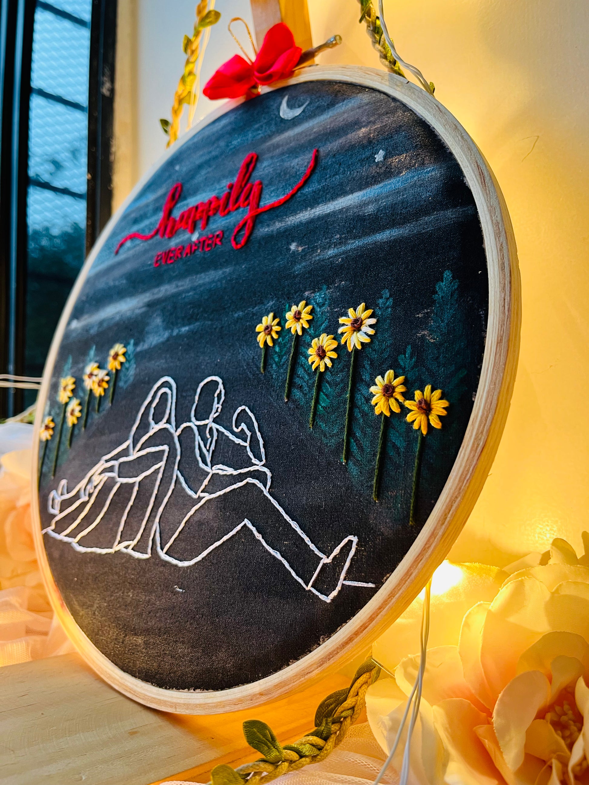 Celebrate love under the stars with this custom hoop, inspired directly from your couple photo.